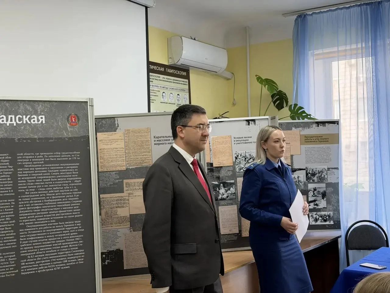 В ходе выступления работником прокуратуры до присутствующих доведена информация о решении Волгоградского областного суда, которым удовлетворено заявление прокуратуры региона о признании военными преступлениями и преступлениями против человечности, геноцидом советского народа установленных и вновь выявленных преступлений, совершенных немецко-фашистскими захватчиками и их пособниками на оккупированной в период с июля 1942 года по февраль 1943 года территории региона. Также работник надзорного ведомства рассказала о проводимой прокуратурой работе по сохранению исторической памяти о Великой Отечественной войне, патриотическому воспитанию подрастающего поколения.