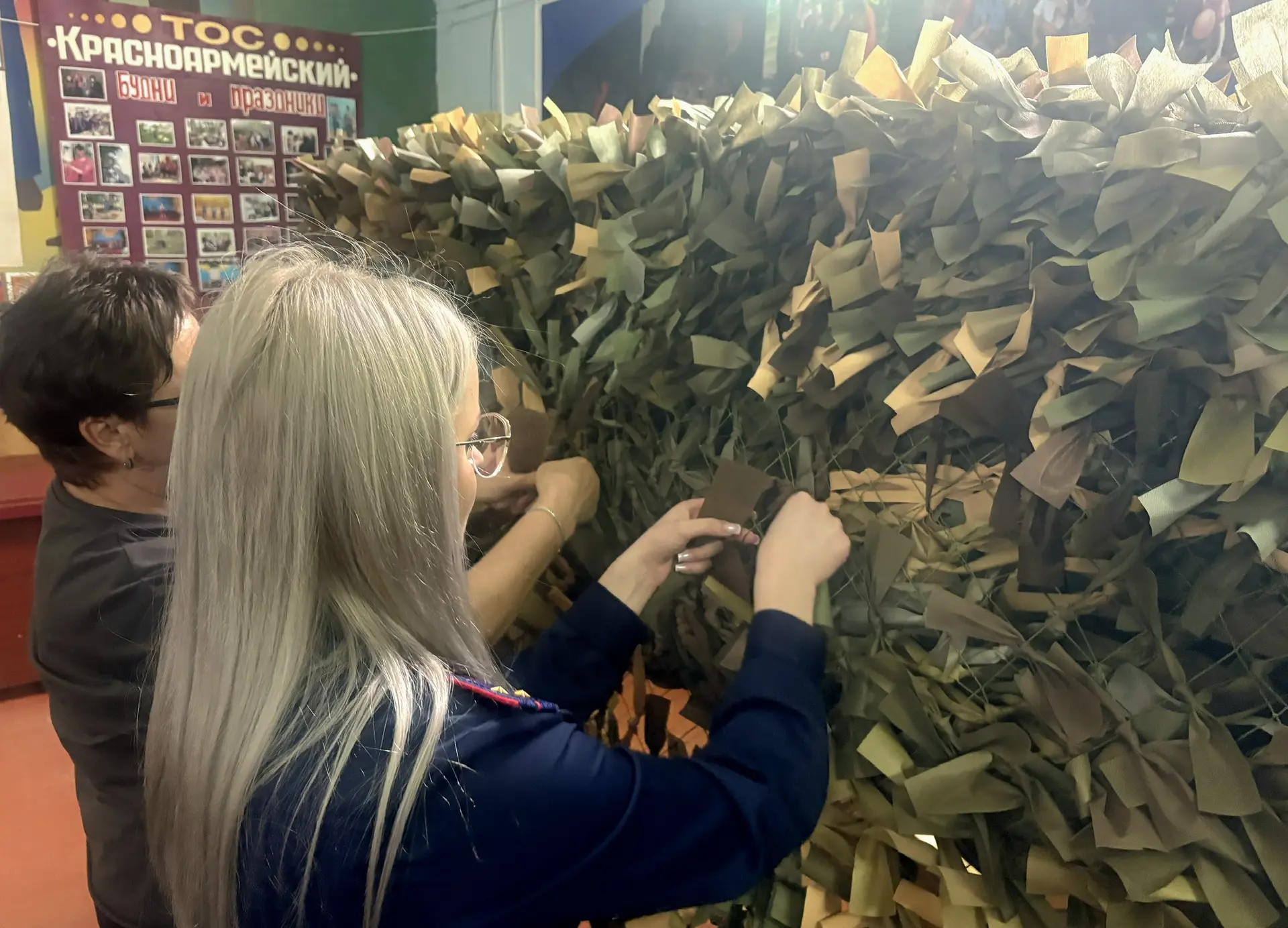 Представители следственного управления СК России по Волгоградской области совместно с добровольцами приняли участие в изготовлении маскировочных сетей.