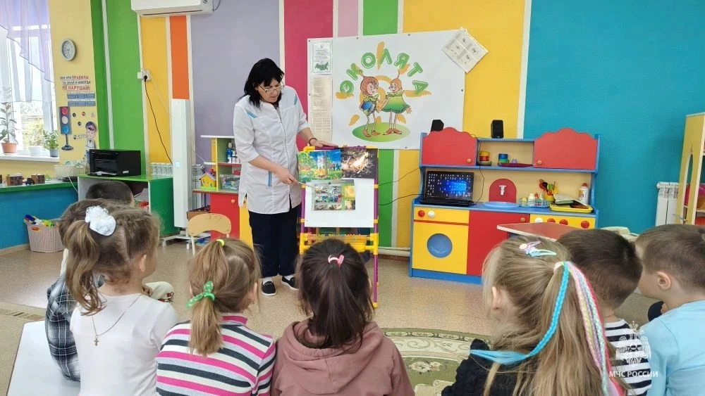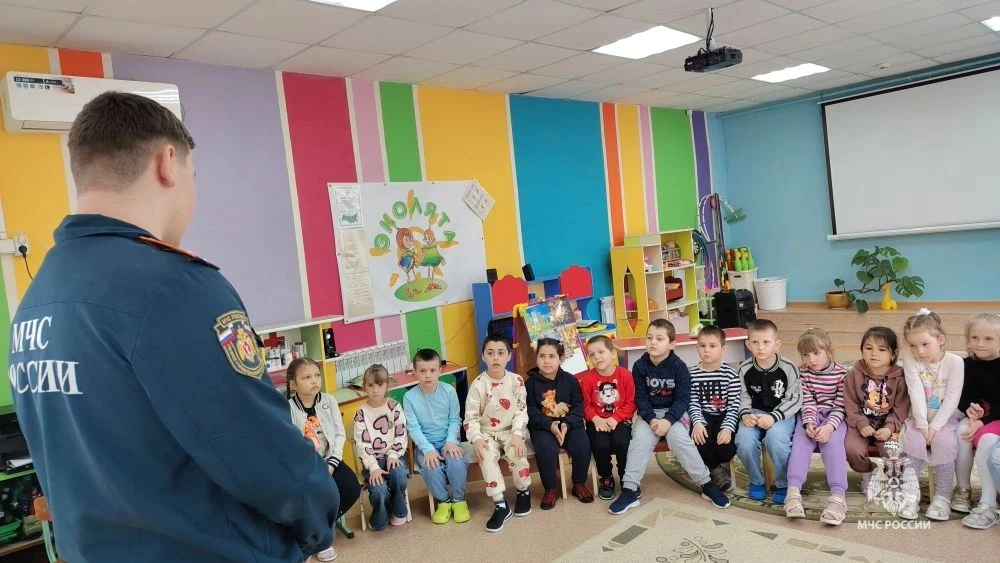 Инспектор ОНД и ПР по Котельниковскому, Октябрьскому и Светлоярскому районам Дмитрий Губкин провел урок безопасности в Дубовоовражском детском садике «Ромашка» Светлоярского района.