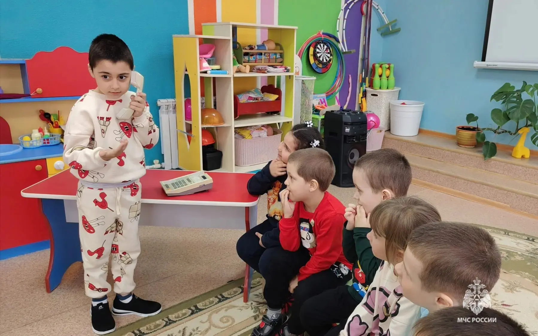 объяснил малышам, как нужно себя вести, если вдруг заметил признаки возгорания;