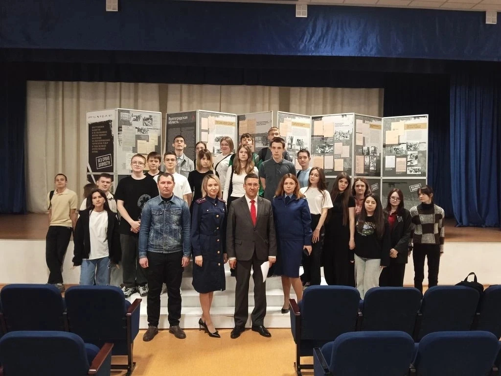 В рамках выступления заместителем прокурора района до аудитории доведена информация о результатах работы прокуратуры региона по сохранению исторической памяти о Великой Отечественной войне, в том числе заявлении о признании военными преступлениями против человечности установленных и вновь выявленных преступлений, совершенных немецко – фашисткими захватчиками на оккупированной в период с июля 1942 по февраль 1943 гг. территории, удовлетворенном Волгоградским областным судом 23 августа 2023 года.