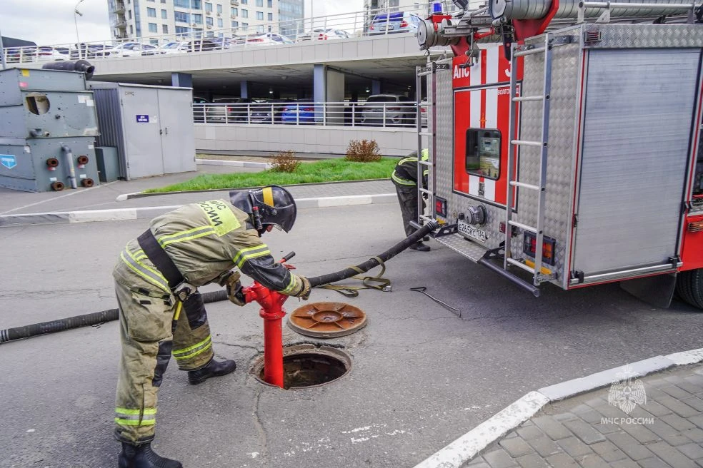Сотрудники МЧС России опробовали различные способы подачи воды на кровлю высотного здания: