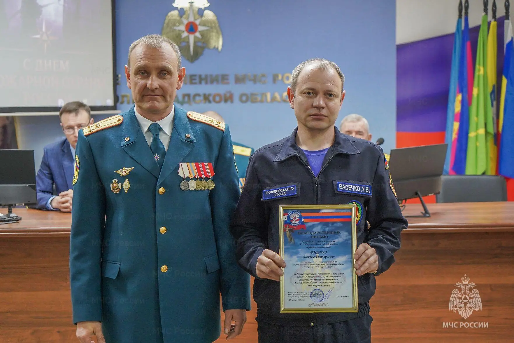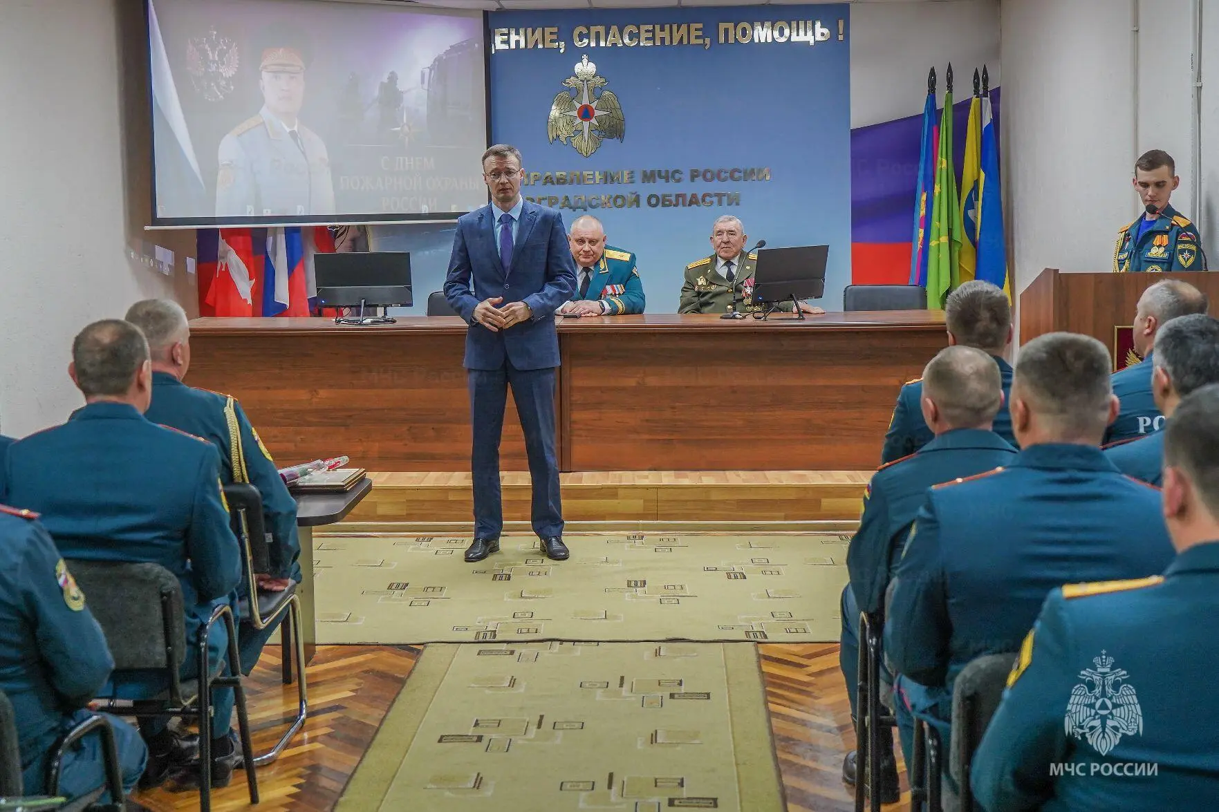 С приветственным словом к присутствующим обратился начальник Главного управления МЧС России по Волгоградской области генерал майор внутренней службы Иван Павленко. К поздравлениям также присоединился временно исполняющий полномочия председателя Комитета по обеспечению безопасности жизнедеятельности населения Волгоградской области Александр Мелкумов.