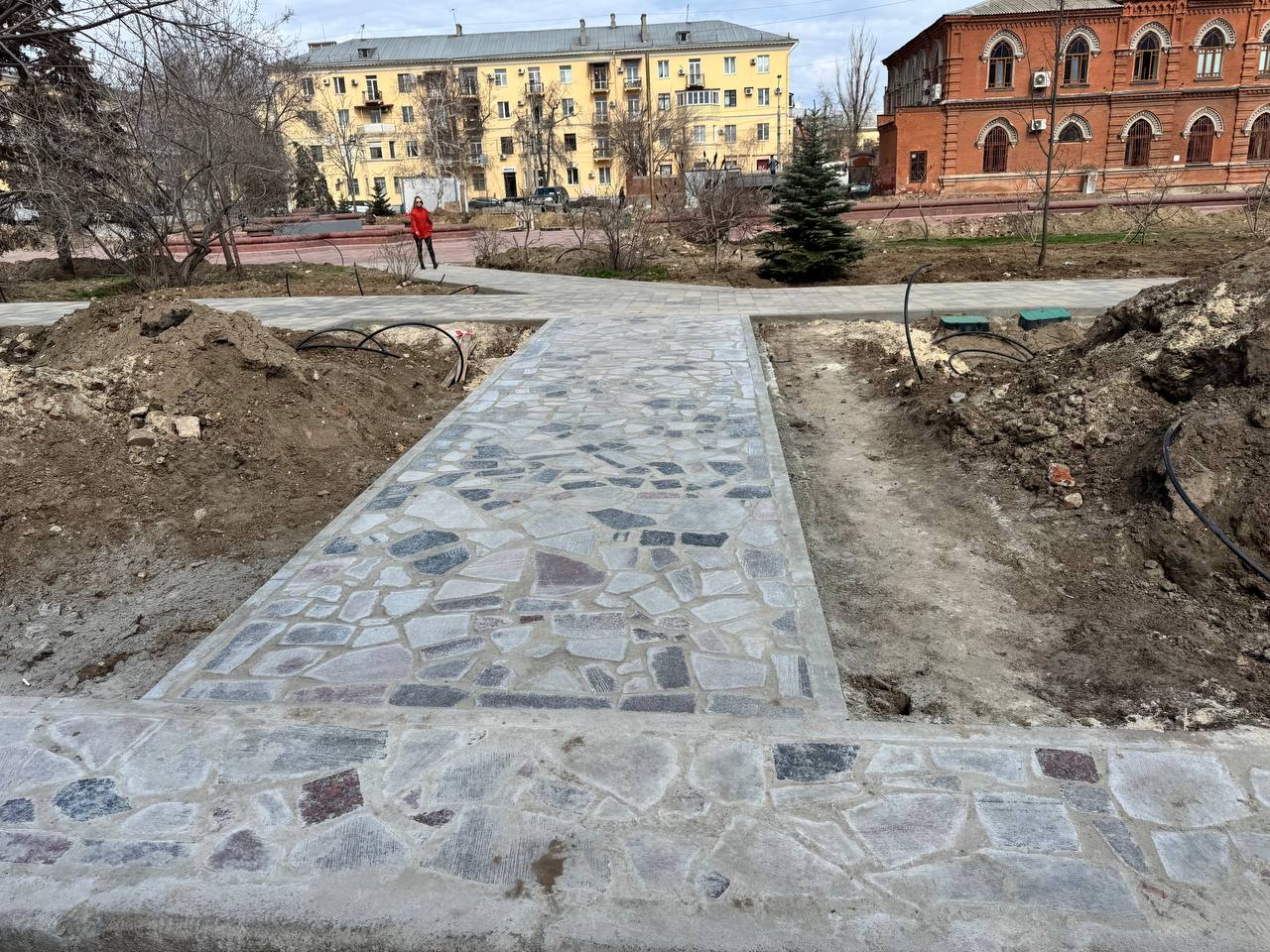 Ремонт сквера Симбирцева не завершили к апрелю-2026 в Волгограде