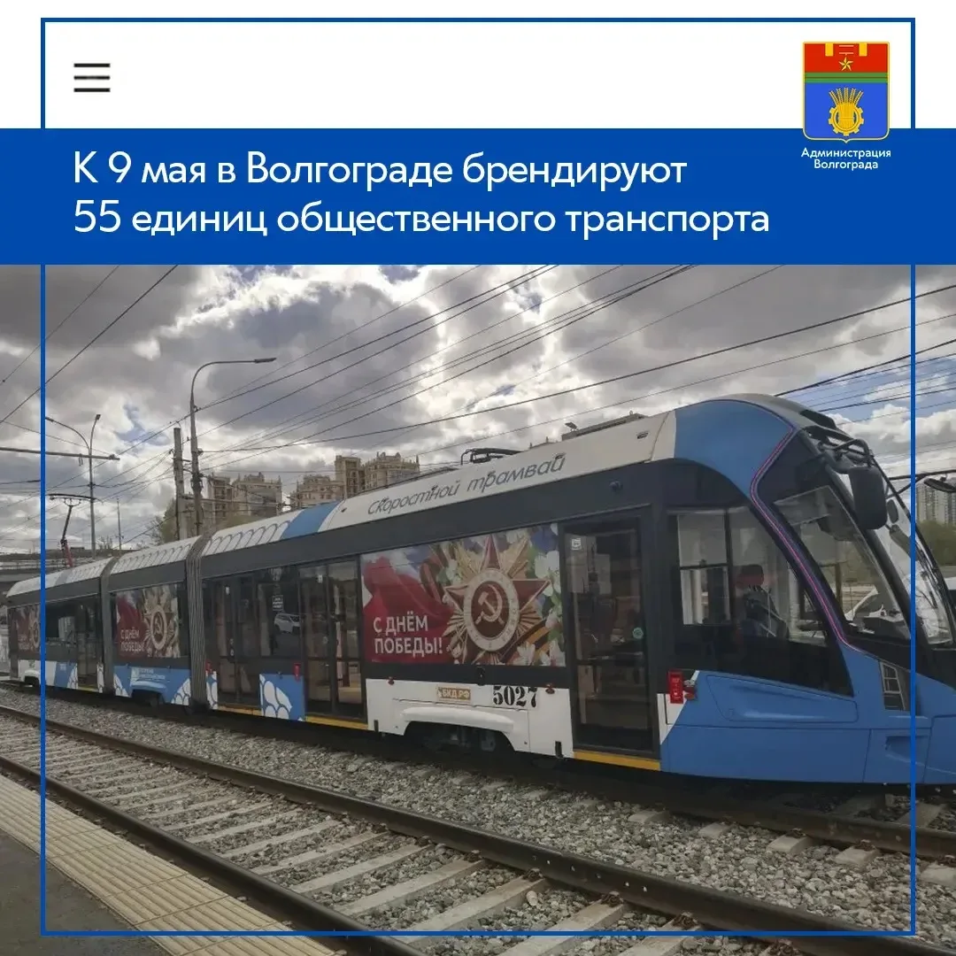 В преддверии Дня Победы в Великой Отечественной войне транспортные предприятия приступили к брендированию подвижного состава, работающего на опорных муниципальных маршрутах. Первые праздничные трамваи и автобусы уже вышли на линии – всего же по городу будут курсировать 55 единиц украшенного транспорта.