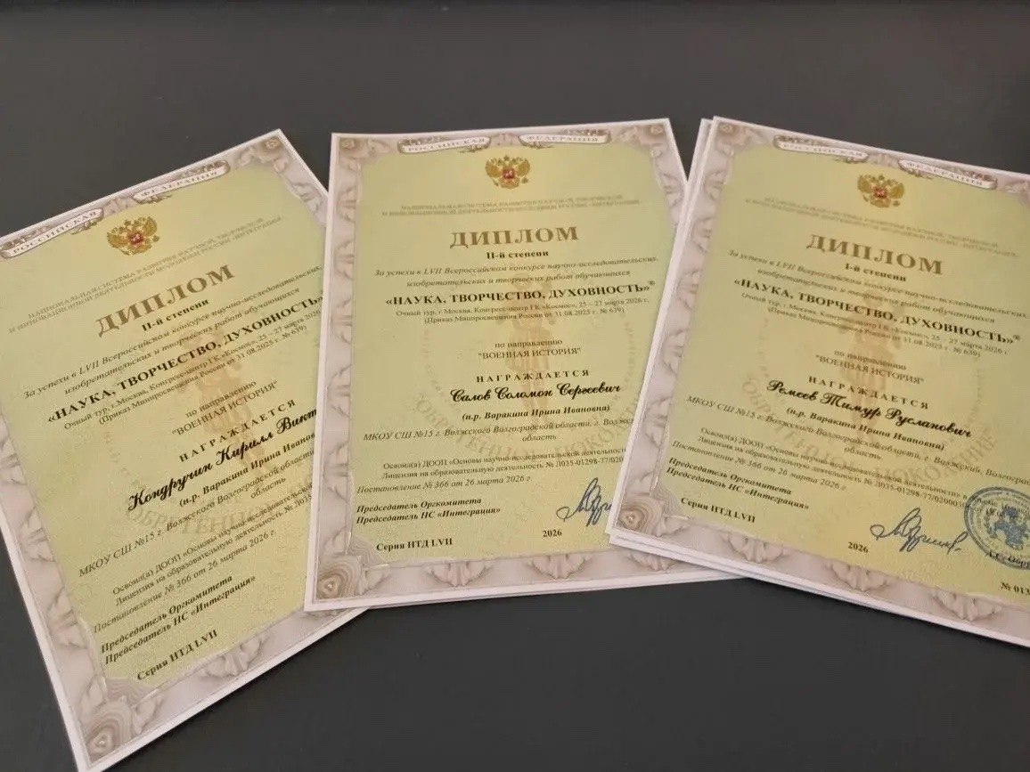 Пятеро старшеклассников школы № 15 Волжского вернулись домой с призовыми местами Всероссийского конкурса исследовательских работ «Наука. Творчество. Духовность». Более 700 участников из 86 регионов страны собрались в Москве, чтобы представить свои проекты. И наши ребята не растерялись — их работы получили высокую оценку экспертного совета!