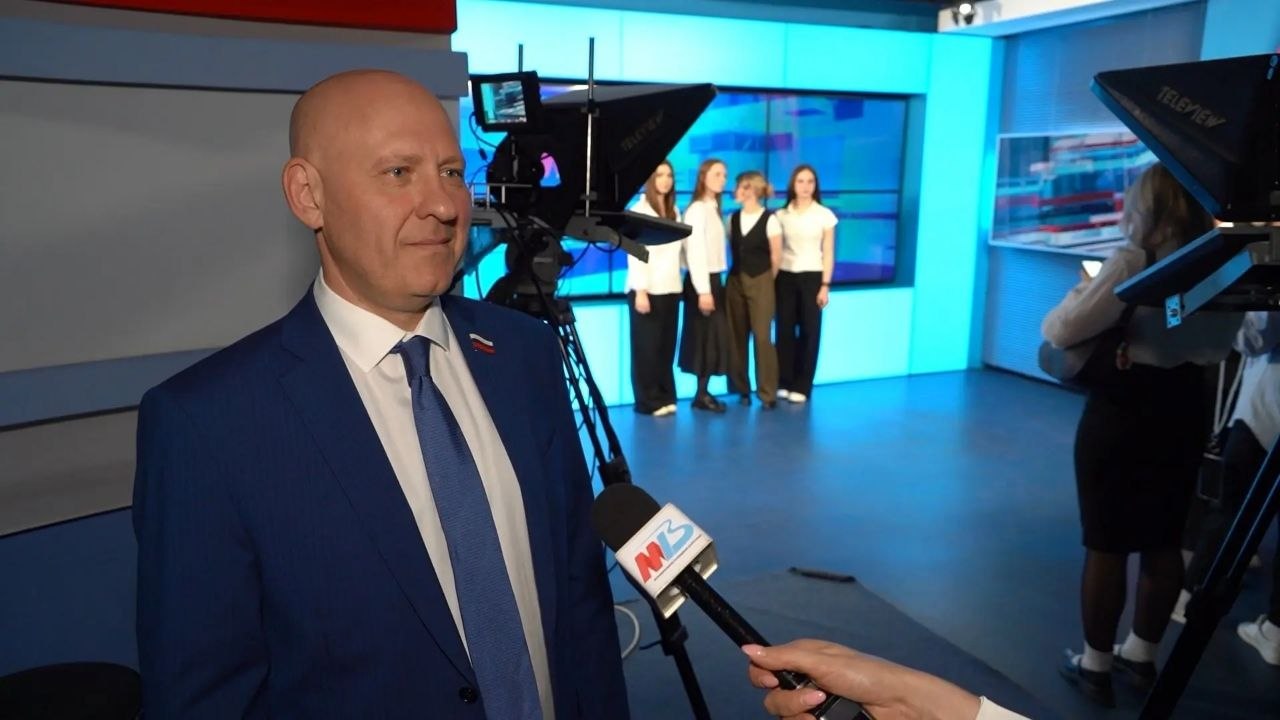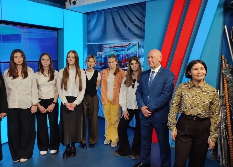 В редакцию телекомпании школьники пришли вместе с первым заместителем председателя Волгоградской городской Думы Дмитрием Дильманом.