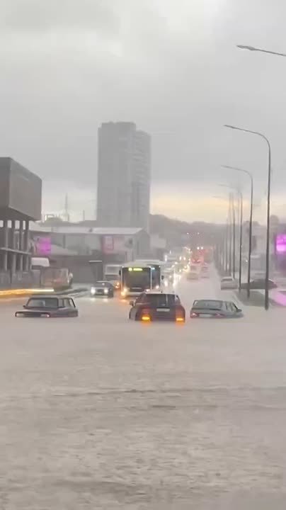Машины уходят под воду прямо на дорогах.
