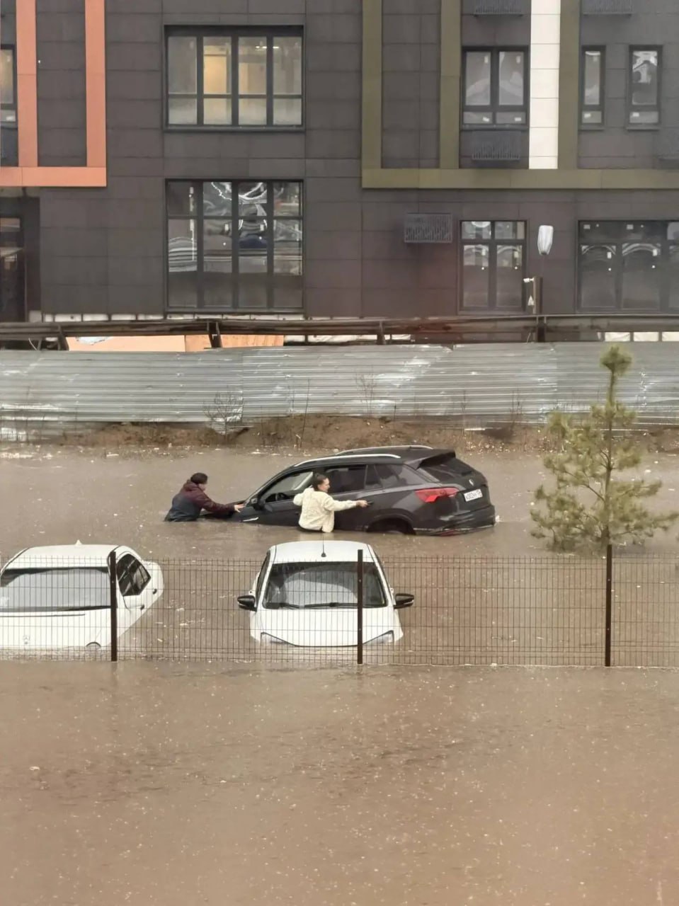 Ливень 1 апреля превратил дороги Волгограда в реки, а машины в корабли
