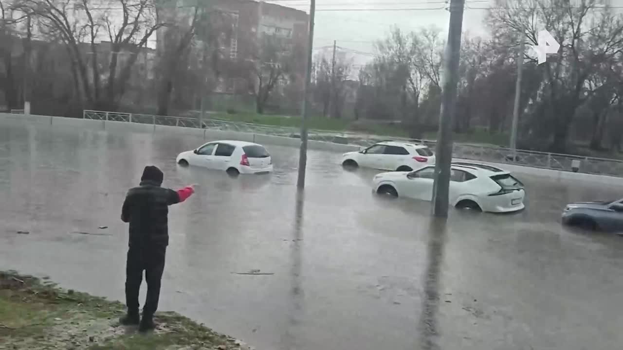 Машины настолько ушли под воду, что не видно фар. Всё это — последствия Каспийского циклона, который принес в город мощный ливень.