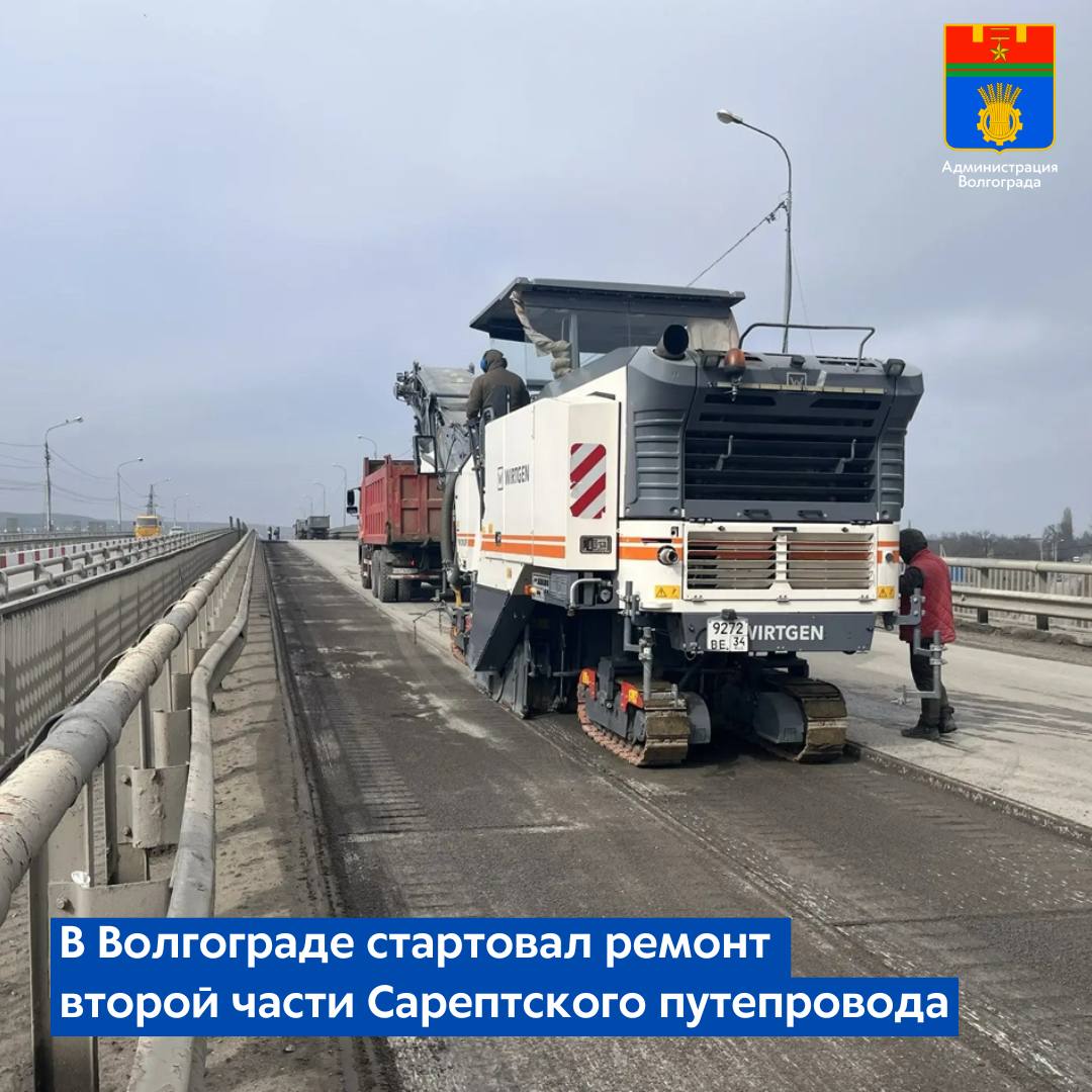 Дорожные бригады начали фрезерование изношенного дорожного покрытия на второй части Сарептского путепровода в Красноармейском районе. Работы на объекте ведет компания ООО «Рисна» в рамках национального проекта «Инфраструктура для жизни».