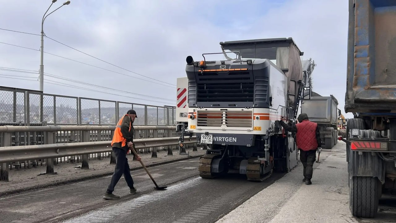 Рабочие демонтируют асфальт на глубину до 10 см, а после займутся восстановлением пролетов, бетонных элементов и гидроизоляции. На следующем этапе будут установлены новые барьеры.