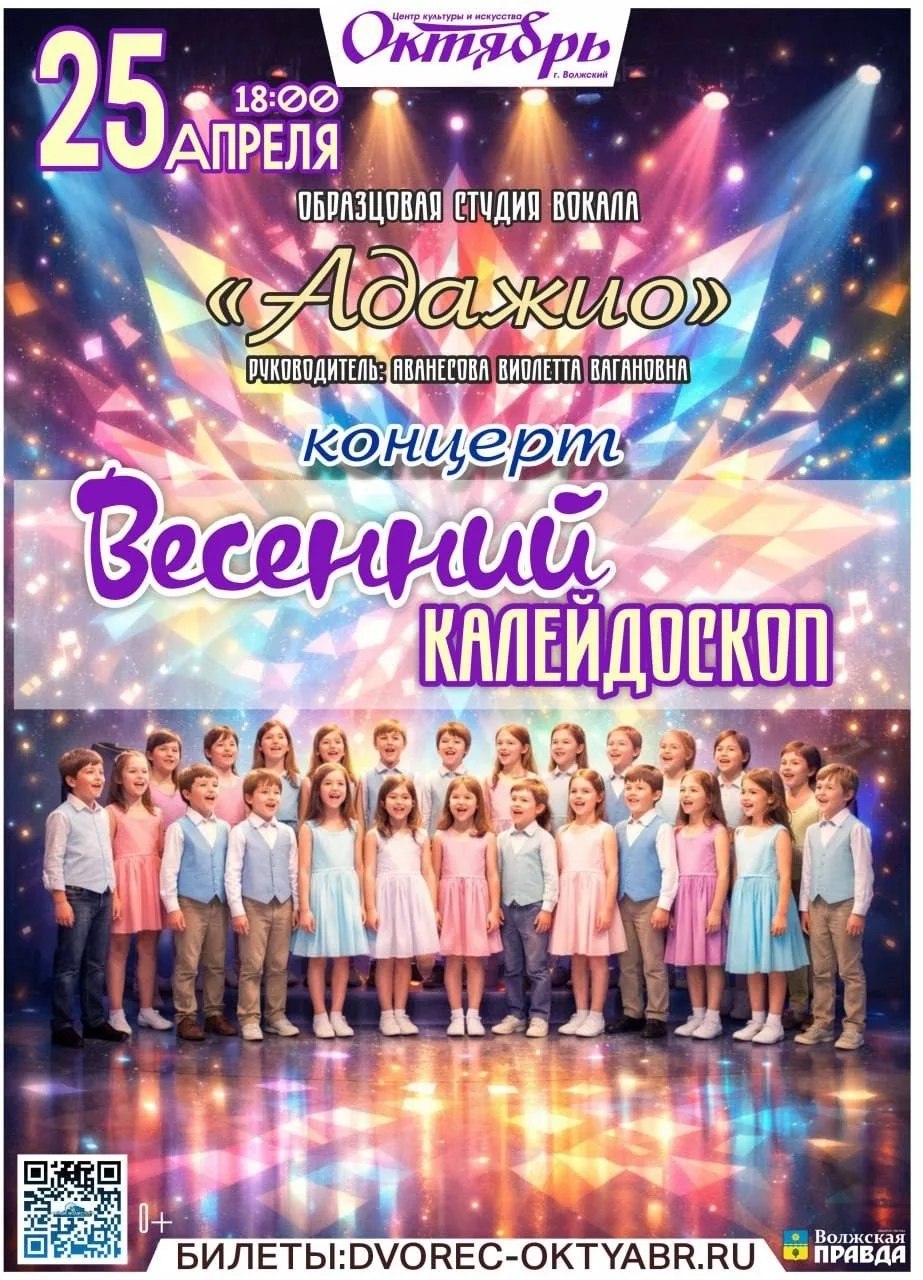 25 апреля в 18.00. «Весенний калейдоскоп». Образцовая студия вокала «Адажио». Купить билет: https://clck.ru/3RsePW