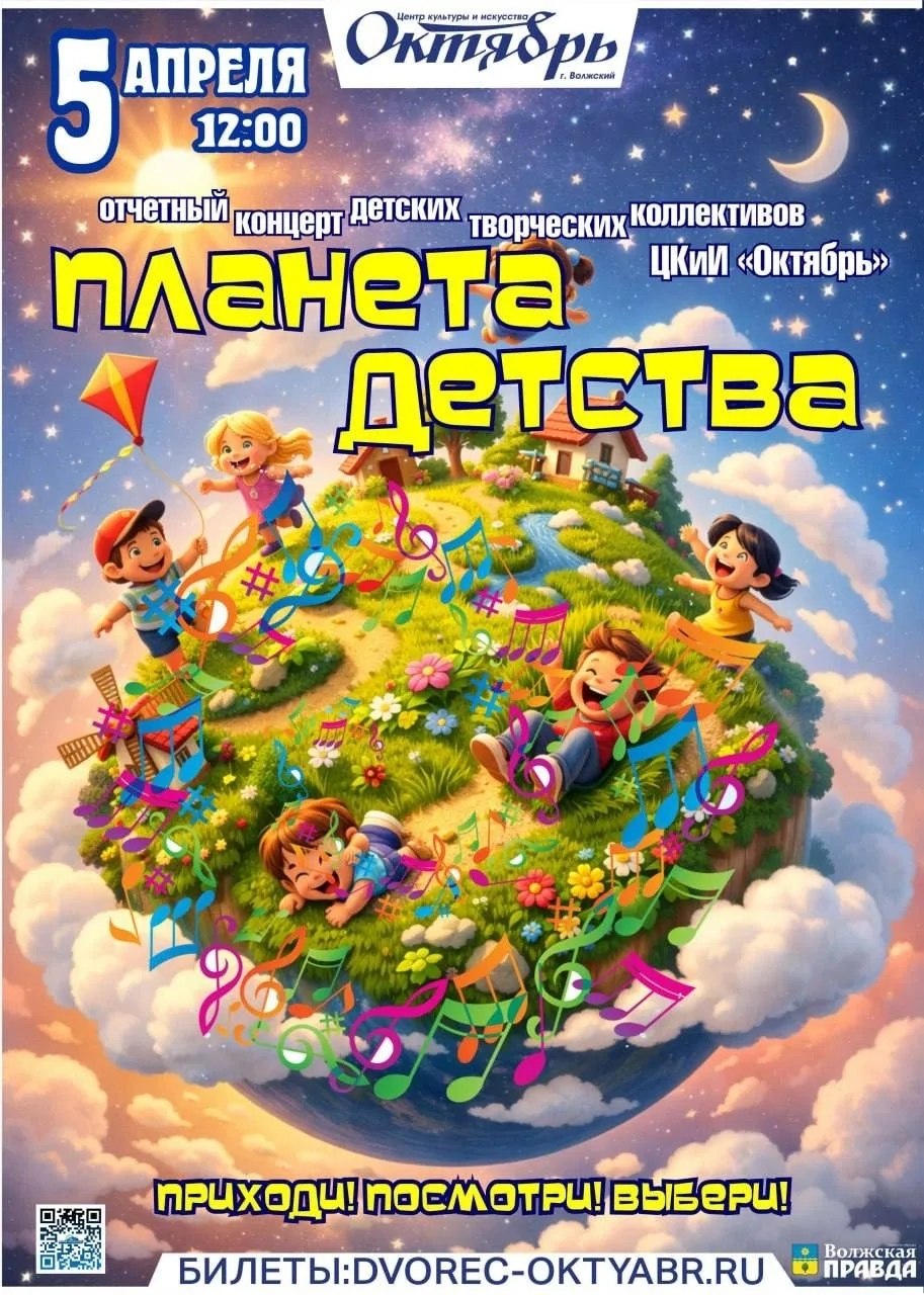 5 апреля в 12.00. «Планета детства». Отчетный концерт детских творческий коллективов. Купить билет: https://clck.ru/3RsePW