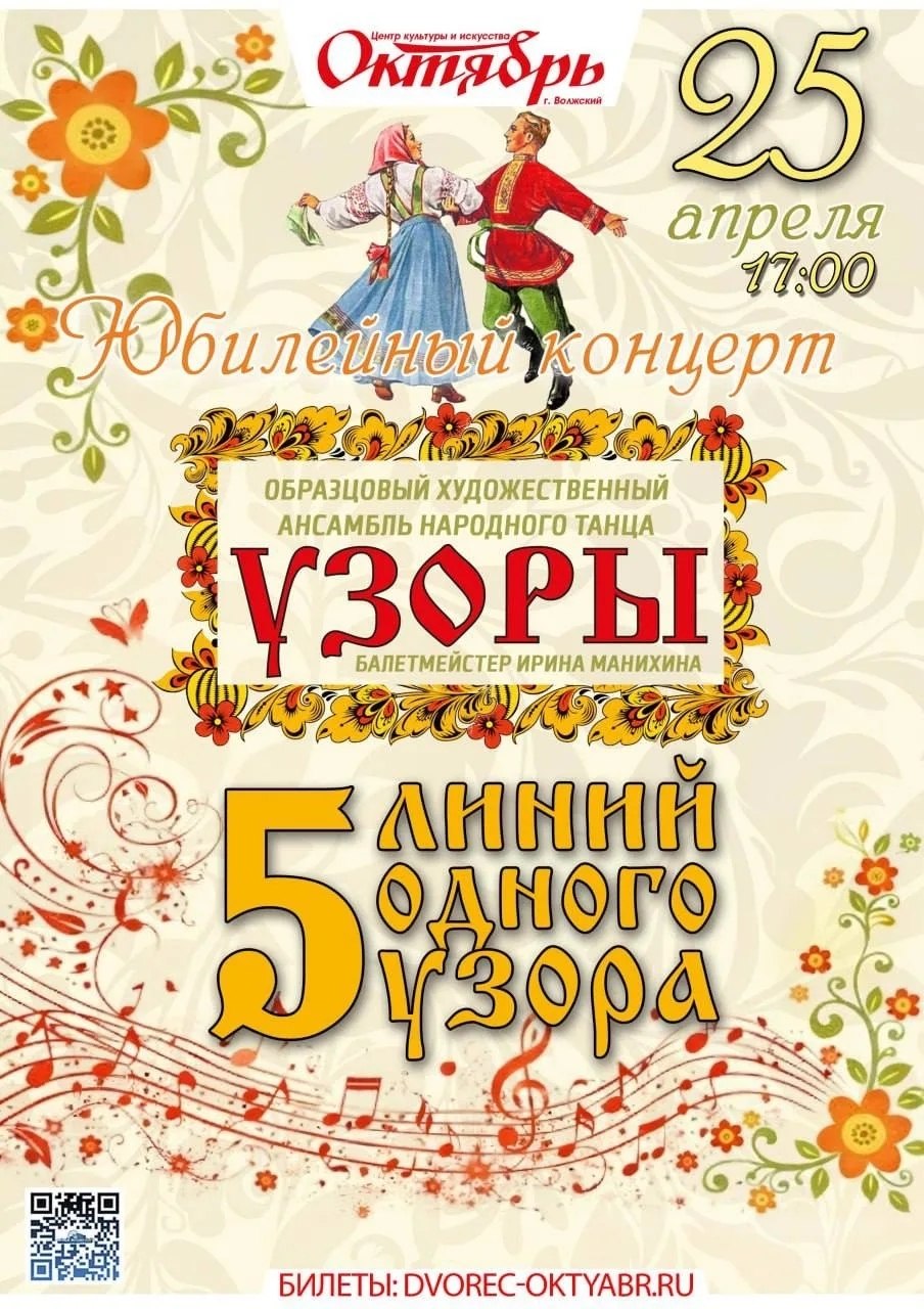 25 апреля в 17.00. «5 линий одного узора». Юбилейный концерт Образцового художественного ансамбля «Узоры». Купить билет: https://clck.ru/3RsePW