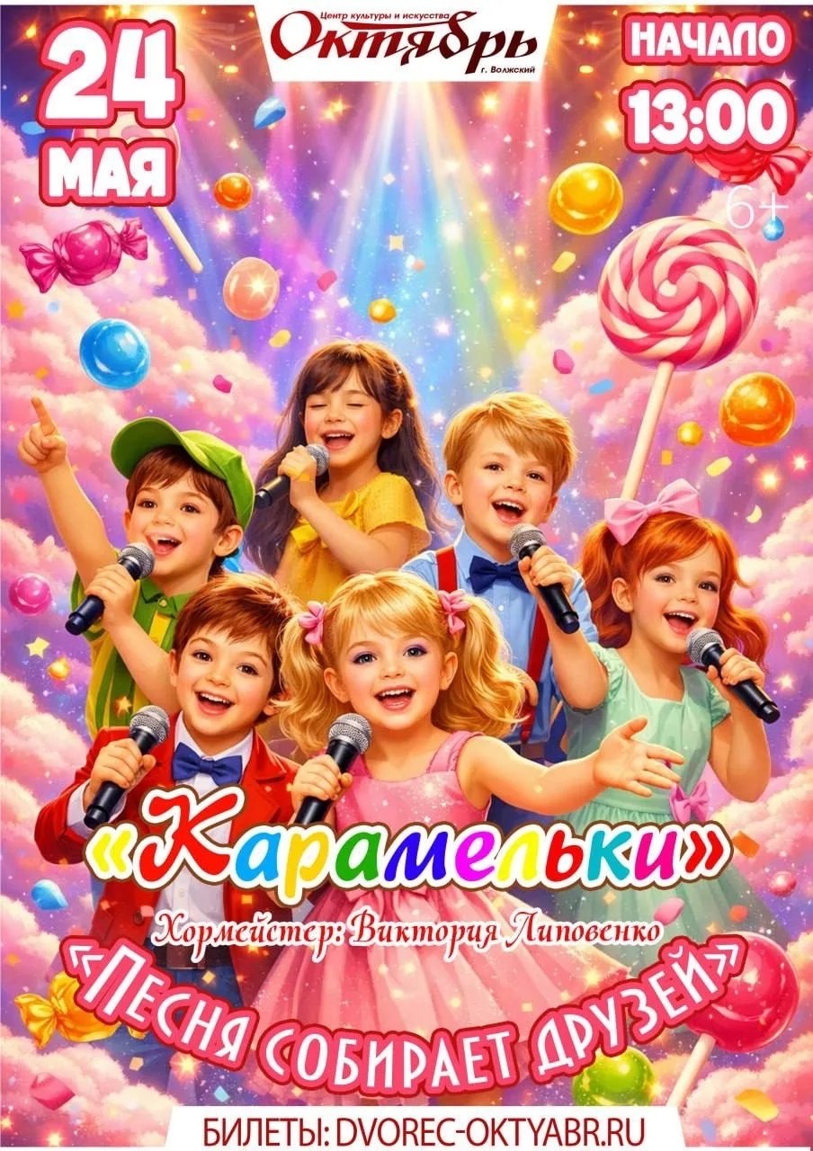 24 мая в 13.00. «Песня собирает друзей». Концерт Образцового художественного ансамбля эстрадной песни «Карамельки». Купить билет: https://clck.ru/3RsePW