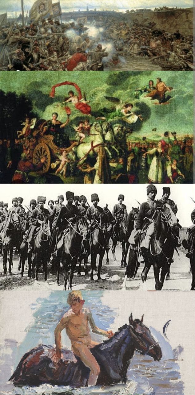 А в 1814-м, русская армия вошла в Париж. В день отречения Наполеона от престола произошло историческое событие (многими художниками воплощённое в картинах - казаки купают коней в Сене). Казаки превратили берега Сены в пляжную зону : купались сами и купали лошадей. "Водные процедуры" принимались, как дома - то есть либо в одном исподнем, либо "в чем мать родила".