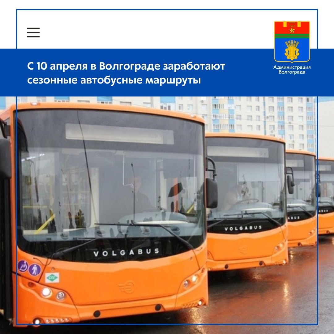 В апреле маршруты №№ 7 «Царицынская опера - «Дачи «Металлург», 32 «Судоверфь – СНТ «Нефтяник» - СНТ «Татьянка», 45 «Руднева – Дачи «Кировец», 48 «ВГТЗ - Дачи», 50 «Обувная фабрика» - С.О. «Автотранспортник», 56 «Завод «Ермана» - С.О. «Лесник», 58 «Завод «Петрова» - С.О. «Здоровье», 60 «Тулака – С.О. «Спутник», 99 «ВГТЗ - «Дамба» будут работать четыре дня в неделю: по средам, пятницам и выходным дням. Автобусы по направлениям №53 «Ж/д вокзал – С.О. «Орошенец» и №57 «Школа №33» – С.О. «Шельф» доставят дачников к садоводческим участкам по средам и выходным дням, а маршрут №54 «Ж/д вокзал – С.О. «Слава» будет работать по выходным и праздничным дням.