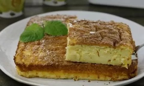 Теперь, когда десерт готов, его аккуратно переложить на блюдо. Для придания внешнего вида, можно посыпать сахарной пудрой и украсить свежими листьями мяты. Этот легкий и сочный десерт станет великолепным завершением любого застолья!