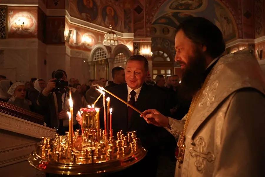 Глава региона поставил свечи, а в полночь вместе с прихожанами прошел Крестным ходом вокруг собора. Не все горожане, приехавшие в храм, смогли попасть внутрь собора – он был переполнен. Десятки людей смотрели трансляцию на улице в Александровском саду.