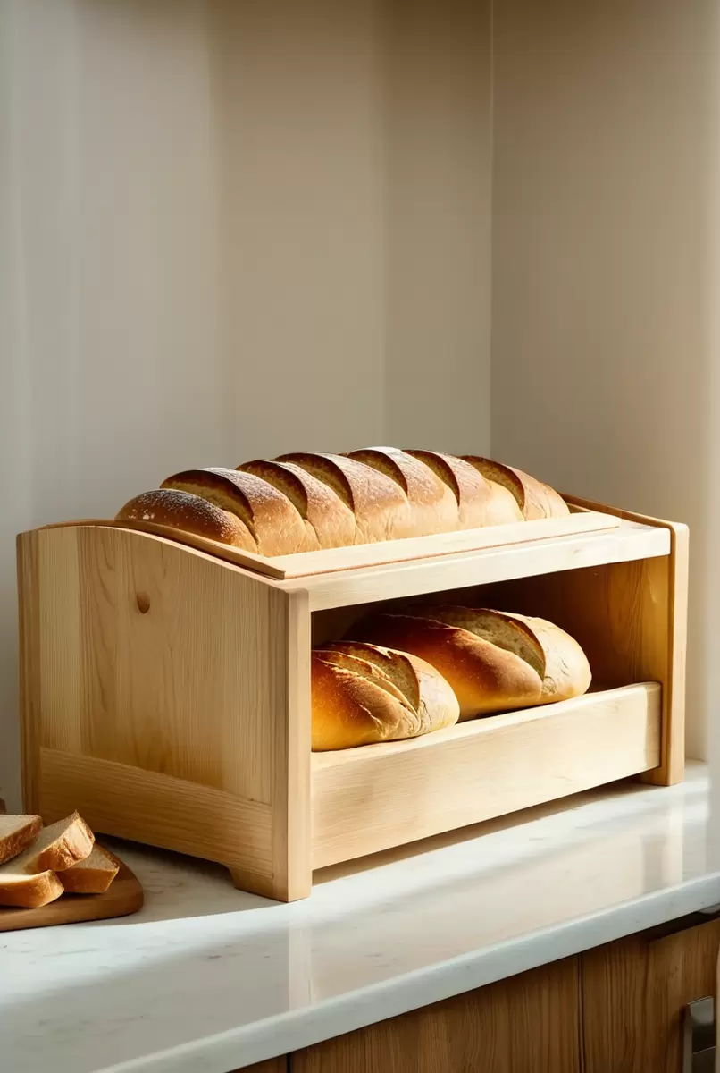 Натуральные материалы, такие как дерево, керамика и бамбук, предлагают множество преимуществ. Деревянные хлебницы прекрасно поглощают излишнюю влагу, предотвращая развитие плесени, а кроме того, выглядят тепло и уютно на любой кухне. Липа и береза - отличные материалы для подобных изделий, ведь они не обладают ярко выраженным запахом, что позволяет сохранить оригинальный аромат хлеба.