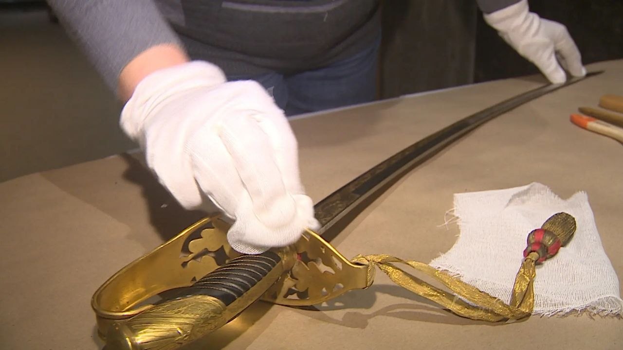 Только чтобы открыть витрину, уже нужно приложить усилия. Вес стекла вместе с рамой – более 400 килограммов. Затем для профилактических работ используют различные флейцы, кисти, щетки для чистки ткани, спиртовой состав для обработки наград, специальные средства для очистки и консервации оружия, полироль для дерева и пластика, антимоль.