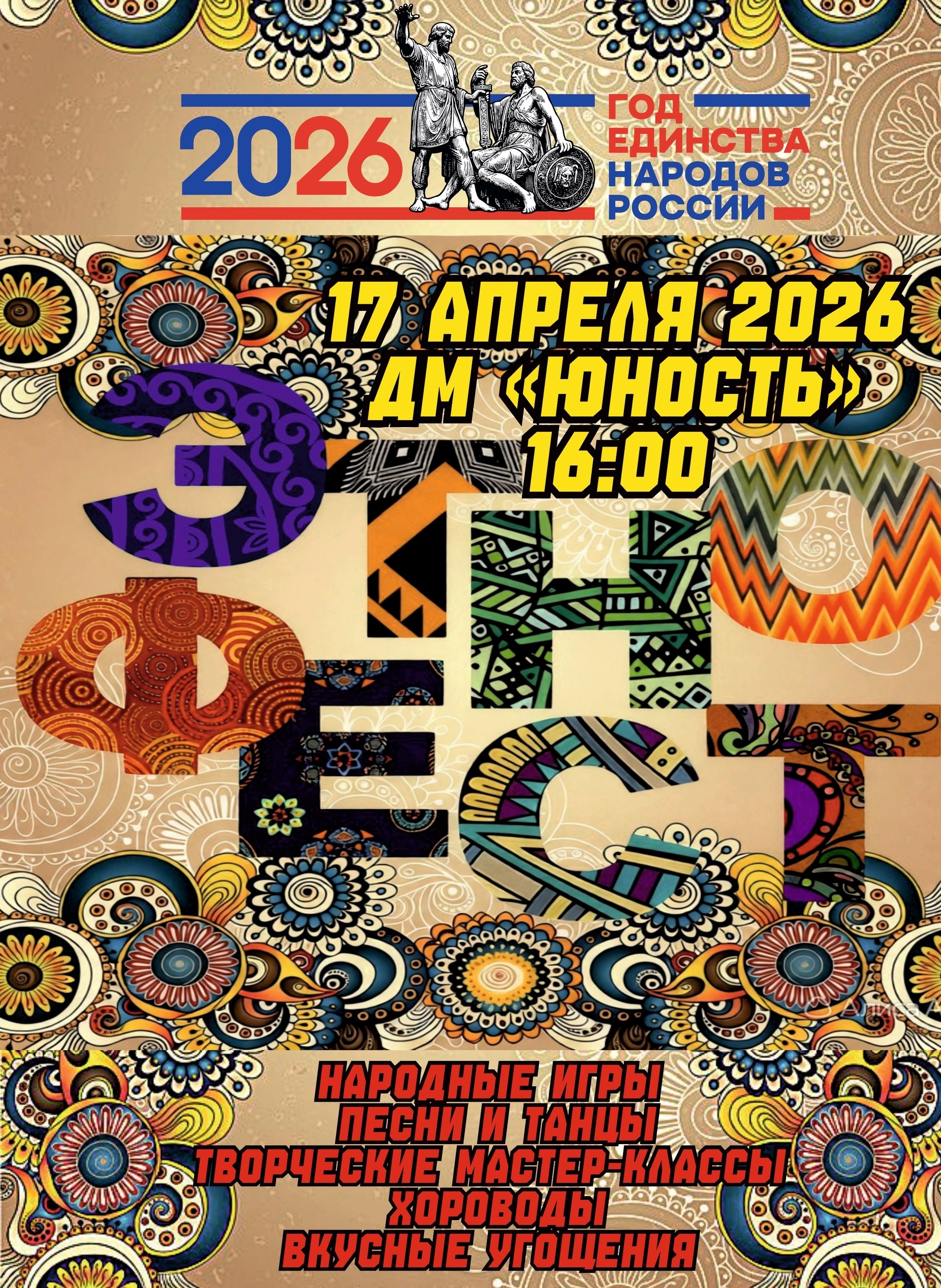 17 апреля в 16:00 во Дворце молодёжи «Юность» состоится городской творческий фестиваль «В ритме ЭТНО»!