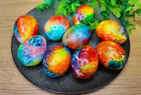 Совет: для самых ярких результатов лучше использовать белые яйца, так как на них цвета выглядят насыщеннее. Не бойтесь экспериментировать с цветами и сочетаниями, ведь именно так рождаются самые красивые узоры. Не забывайте о перчатках, чтобы избежать нежелательных пятен на руках.