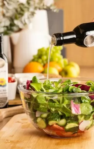 - Сочетать с другими маслами: Необходимо чередовать подсолнечное масло с более полезными аналогами, такими как рафинированное оливковое или масло авокадо.