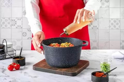Посуду с АП отличает высокая устойчивость к кислым веществам. Это делает такую посуду идеальной для приготовления блюд, требующих добавления уксуса или лимонного сока, без риска повреждения материала. Кроме того, антипригарная посуда не подвержена коррозии, что избавляет от необходимости после каждого использования вытирать её насухо.