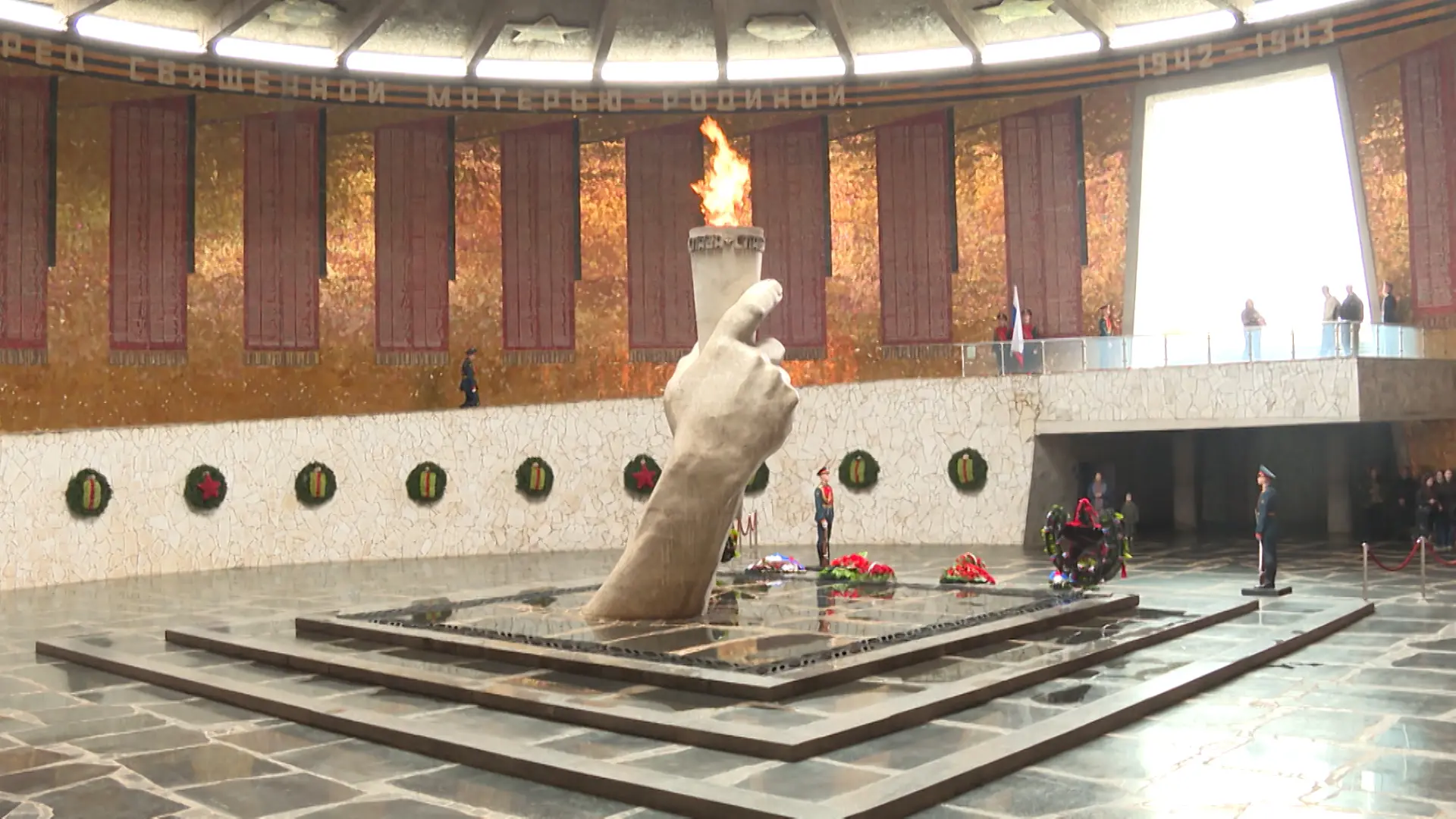 Вход в Зал Воинской Славы на Мамаевом кургане и смена Почетного караула будет осуществляться сверху, со стороны Площади Скорби с 22 по 24 апреля, сообщили в музее-заповеднике «Сталинградская битва»