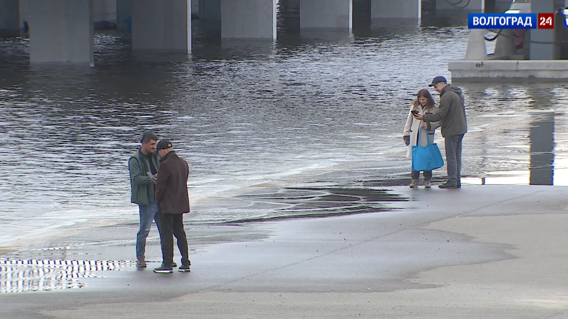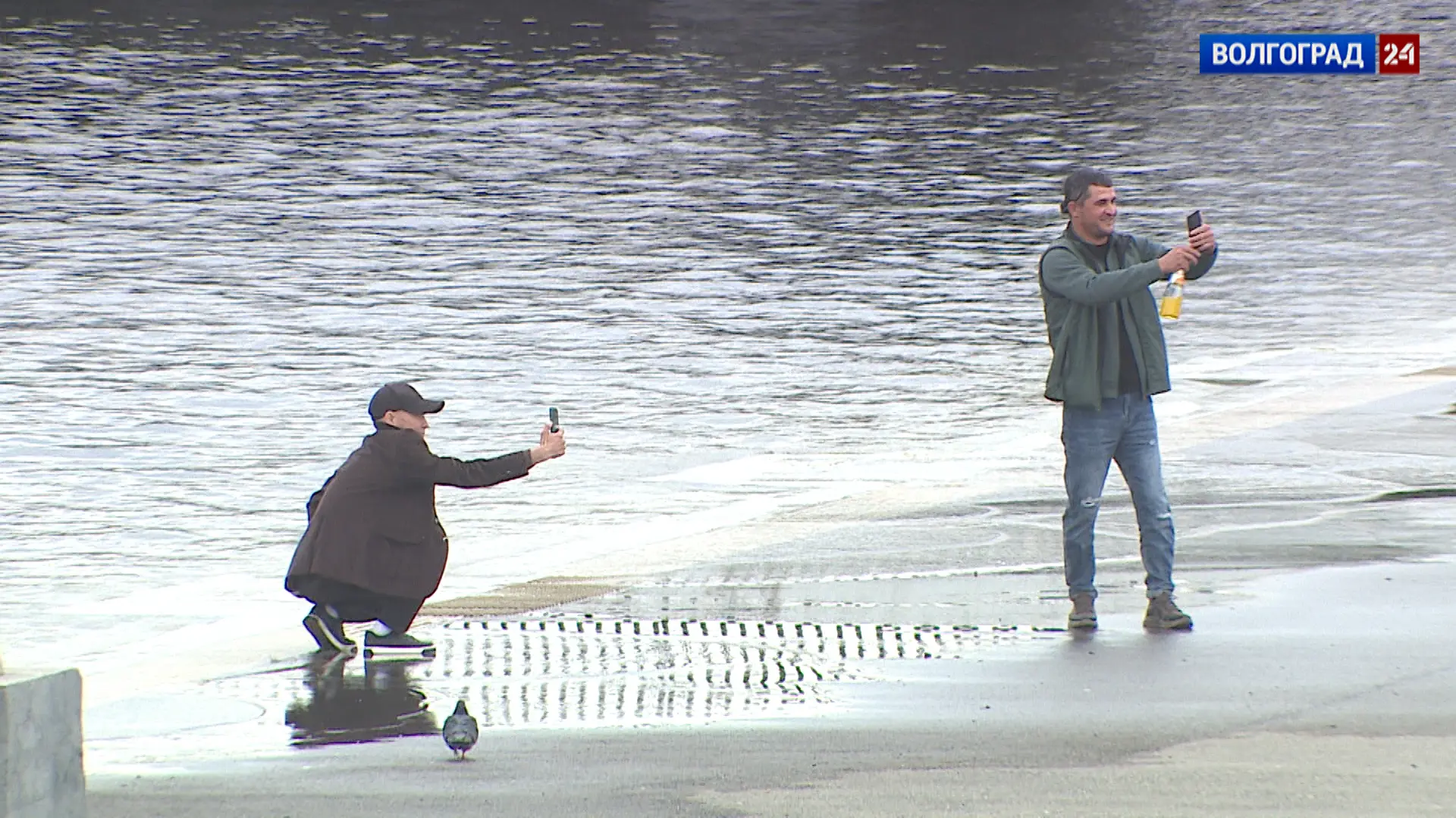 Немало волгоградцев пришли сделать фото на фоне большой воды.