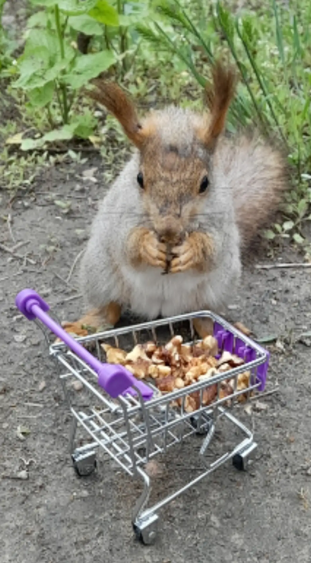 Тележку орешков привезли для белочек на Мамаевом кургане волгоградцы
