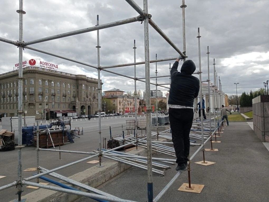 Трибуны для парада на День Победы строят на площади Павших Борцов в Волгограде