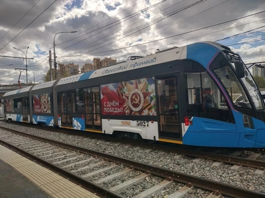Уже курсируют брендированные трамваи по линии СТ и маршрутам №№ 2, 4, 10 и 11, а также автобусы по маршрутам №№ 2, 6, 21, 89 и другие. К 9 Мая подготовят также электробус по маршруту № 15 и троллейбусы по маршрутам №№ 8а и 10а.