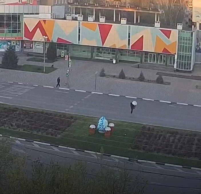 Напомним, что композиция состояла из четырёх металлических «куличей» (больших бочек) и одного яйца в центре. Злоумышленник повалил конструкцию и украл один из «куличей».